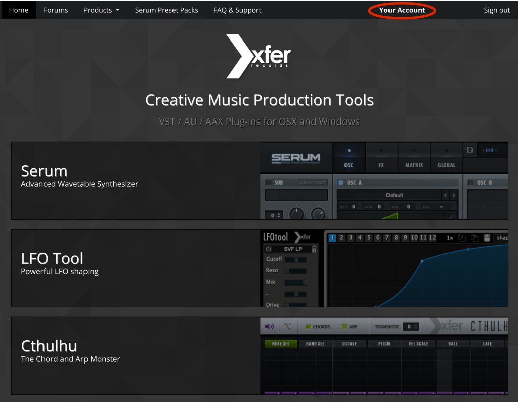You can also open the Plugin in your DAW and navigate to ‘Menu > Check for Updates… > Website”. - Sign in to your account at the Xfer Records Website.