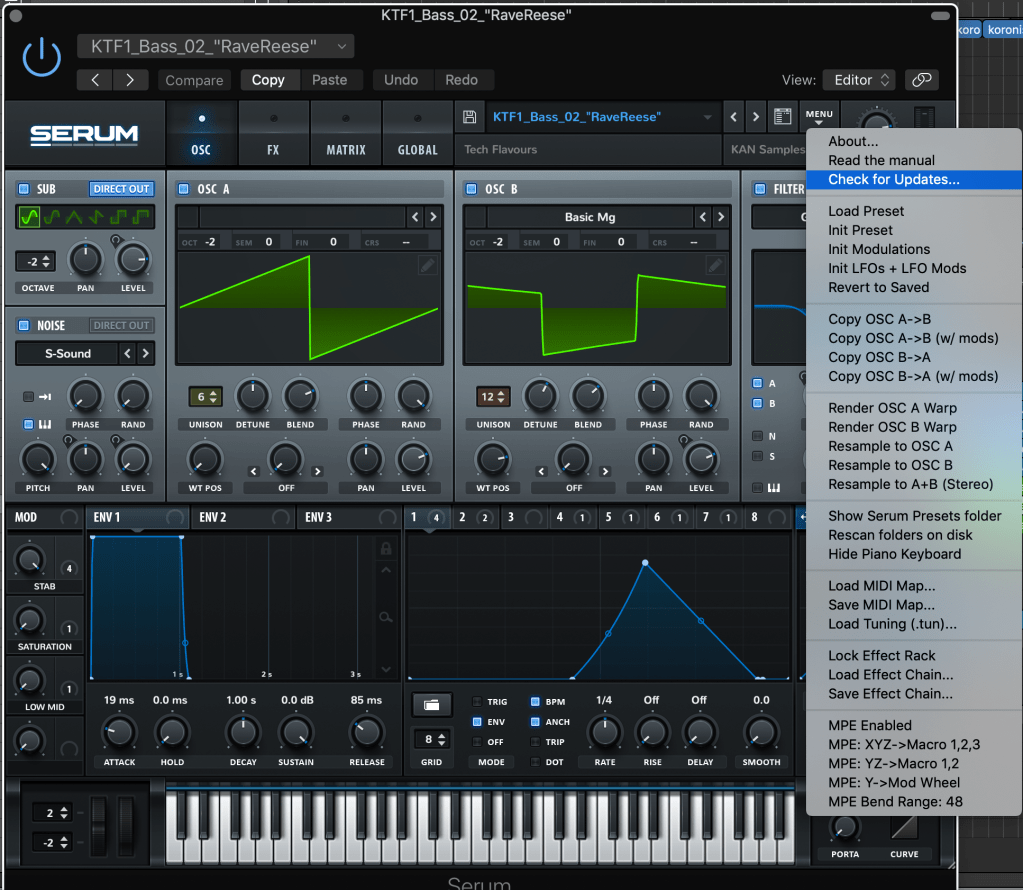 To check what version of Serum you currently have, open the Plugin in your DAW and under ‘Menu’ select ‘About…’