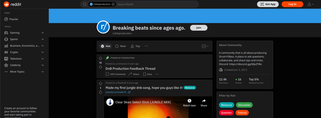 Reddit – r/DnBProduction (www.reddit.com/r/DnBProduction)